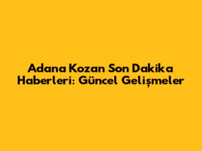 Adana Kozan Son Dakika Haberleri: Güncel Gelişmeler
