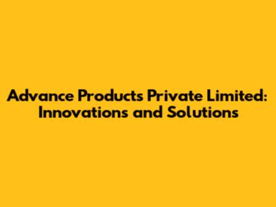 Advance Products Pvt Ltd: Innovations & Solutions