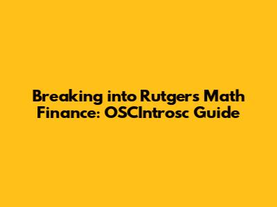 Breaking Into Rutgers Math Finance: OSCIntrosc Guide