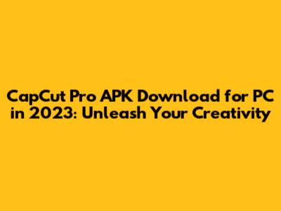 CapCut Pro APK Download For PC In 2023: Unleash Your Creativity