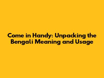 Come In Handy: Bengali Meaning & Usage Explained