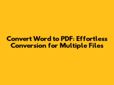 Convert Word To PDF: Easy Steps For Multiple Files