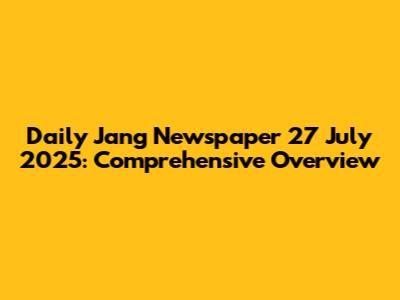 Daily Jang News: July 27, 2025 – Headlines & Updates