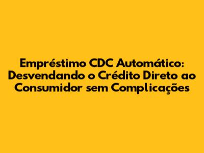Entendendo o Conceito: O Que é Empréstimo CDC Automático?