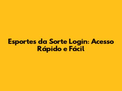 Esportes Da Sorte Login: Acesso Rápido E Fácil