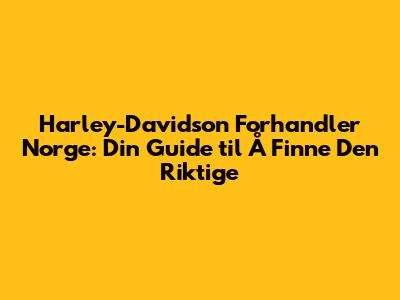 Det finnes flere anerkjente Harley-Davidson forhandlere i Norge. Her er noen av de mest populære, kjent for sitt gode utvalg, utmerkede kundeservice og omfattende servicetilbud. (Merk: Jeg kan ikke gi en fullstendig liste over alle forhandlere, da dette kan endre seg over tid. Det anbefales å gjøre grundig research basert på din lokasjon)