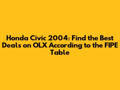 Hey guys! Are you thinking about buying a Honda Civic 2004? Or maybe you're curious about how much your trusty ride is worth? Well, you've come to the right place! Let's dive into the FIPE table and explore what you can expect to find on OLX. The Honda Civic 2004 is a popular choice for those seeking reliability and efficiency in a used car. Known for its durability and relatively low maintenance costs, it remains a favorite among budget-conscious buyers. But before you jump into a deal, it's super important to know what the FIPE table says and how to navigate the listings on OLX. Understanding the FIPE table helps you gauge the average market price, ensuring you don’t overpay. Meanwhile, familiarizing yourself with OLX listings will give you insight into real-world selling prices, potential deals, and the condition of available vehicles. Remember, the goal is to strike a balance between getting a good price and ensuring the car is in good condition.