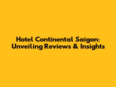Hotel Continental Saigon: Unveiling Reviews & Insights