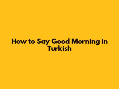 How To Say Good Morning In Turkish