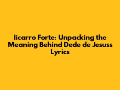 Hey guys! Ever stumbled upon a song that just hits you differently? Like, you can't quite explain why, but the lyrics resonate deep within your soul? Well, today we're diving into Iicarro Forte and the poetic genius of Dede de Jesus. This track, man, it's a whole mood, and understanding the lyrical nuances can really unlock a new level of appreciation. So, grab your favorite drink, settle in, and let's break down what makes this song so special. We're going to explore the themes, the imagery, and the raw emotion that Dede de Jesus poured into these words, making "Iicarro Forte" a track that stays with you long after the music fades. It’s not just about the catchy beats or the smooth melody; it's about the story being told, the feelings being evoked, and the universal truths that connect us all through music. Get ready to connect with the lyrics on a whole new level.