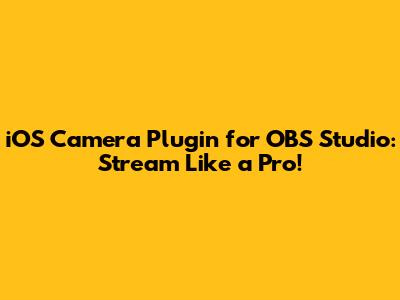 IOS Camera Plugin For OBS Studio: Stream Like A Pro!