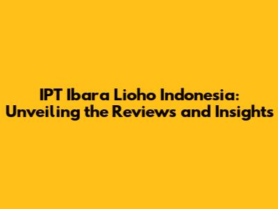 IPT Ibara Lioho Indonesia: Reviews And Insights
