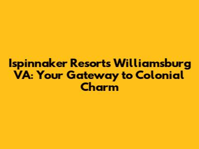Hey guys! Are you planning a trip to Williamsburg, Virginia, and searching for the perfect place to hang your hat after a long day of exploring? Look no further than Ispinnaker Resorts Williamsburg! This isn't just a place to sleep; it's a launchpad for all your historical adventures, offering comfort, convenience, and a touch of home while you soak in the rich history of the area. Let's dive into what makes Ispinnaker Resorts a fantastic choice for your Williamsburg vacation.