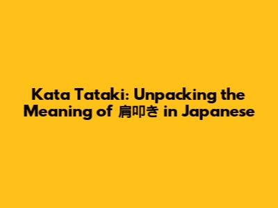 Kata Tataki: Unpacking The Meaning Of 肩叩き In Japanese
