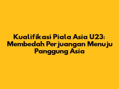Kualifikasi Piala Asia U23 menjadi ajang krusial bagi para pemain muda untuk unjuk gigi dan mengamankan tempat di turnamen bergengsi. Bagi para penggemar sepak bola, momen ini adalah kesempatan emas untuk menyaksikan bibit-bibit unggul dari berbagai negara Asia berjuang meraih tiket ke putaran final. Artikel ini akan membahas secara mendalam tentang kualifikasi Piala Asia U23, mulai dari format kompetisi, jadwal pertandingan, hingga peluang dan prediksi tim-tim yang berpartisipasi. Jadi, siap-siap untuk menyelami dunia sepak bola U23 yang penuh gairah ini, guys!
