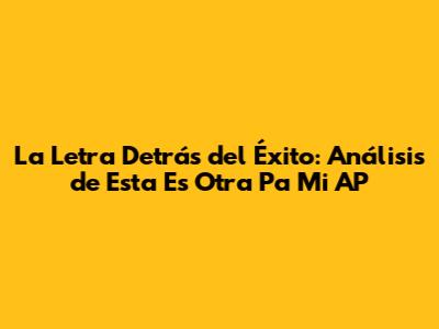 La Letra Detrás Del Éxito: Análisis De Esta Es Otra Pa Mi AP