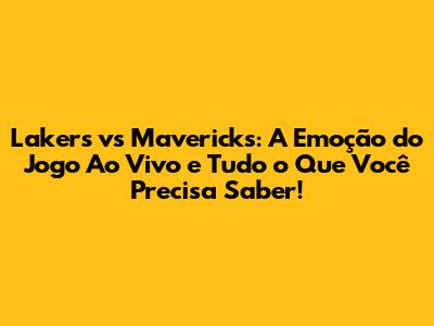 Lakers Vs Mavericks: Veja O Jogo Ao Vivo E Não Perca Nada!