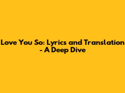 Love You So: Lyrics And Translation - A Deep Dive