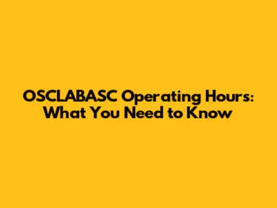 Operating Hours Of OSCLABASC: What You Need To Know