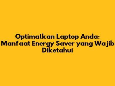 Optimalkan Laptop Anda: Manfaat Energy Saver Yang Wajib Diketahui