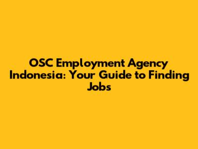 OSC Employment Agency Indonesia: Your Guide To Finding Jobs