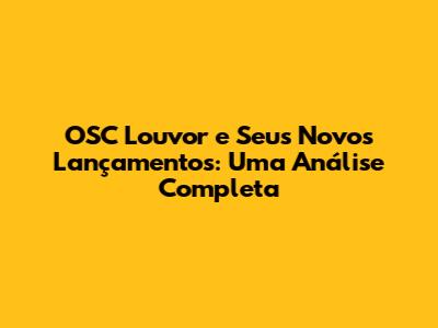 OSC Louvor E Seus Novos Lançamentos: Uma Análise Completa