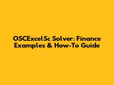 OSCExcelSc Solver: Finance Examples & How-To Guide