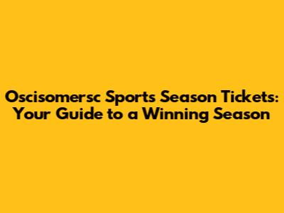 Oscisomersc Sports Season Tickets: Your Guide To A Winning Season