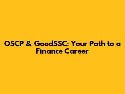 OSCP & GoodSSC: Your Path To A Finance Career