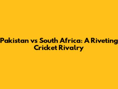 Pakistan Vs South Africa: Head-to-Head Cricket Clash