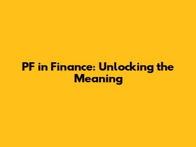 PF In Finance: Unlocking The Meaning