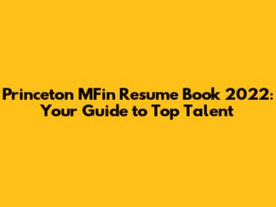 How to Leverage the Princeton MFin Resume Book 2022 for Your Success