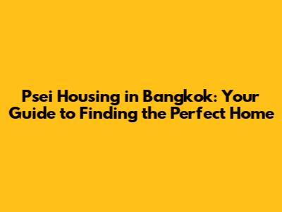 Psei Housing Bangkok: Your Guide To Finding The Perfect Home