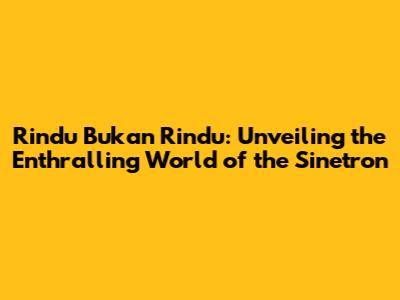 Rindu Bukan Rindu: A Deep Dive Into The Sinetron's Drama