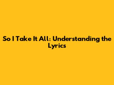 So I Take It All: Understanding The Lyrics