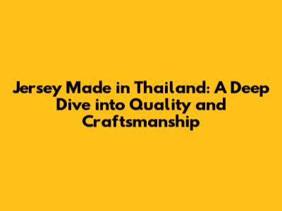 Thailand's Finest: Unveiling Jersey Craftsmanship