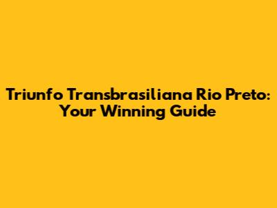 Triunfo Transbrasiliana Rio Preto: Your Winning Guide