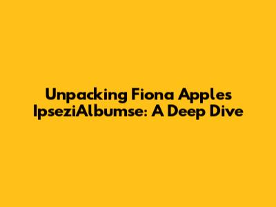 Unpacking Fiona Apple's IpseziAlbumse: A Deep Dive