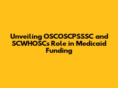 Unveiling OSCOSCPSSSC And SCWHOSC's Role In Medicaid Funding