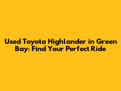 Hey there, car enthusiasts! Are you on the hunt for a reliable and spacious SUV in the Green Bay area? If so, you've probably considered the Toyota Highlander. It's a fantastic vehicle known for its dependability, comfort, and family-friendly features. Buying a used Highlander in Green Bay can be a smart move, offering significant savings compared to a new model. Let's dive into everything you need to know to find the perfect used Highlander for your needs.