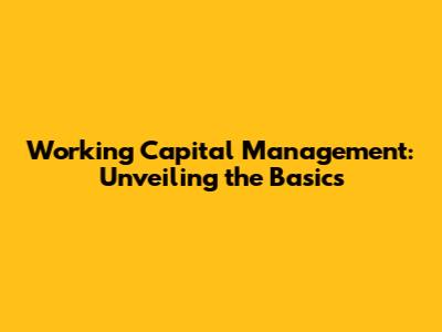 Working Capital Management: A Comprehensive Guide