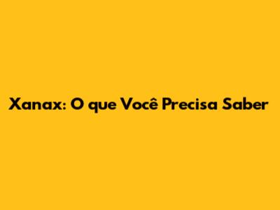 Xanax: O Que Você Precisa Saber