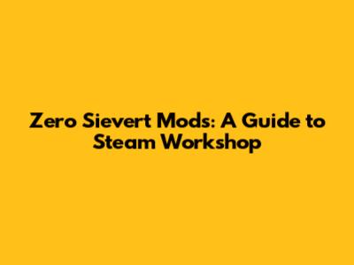 Zero Sievert Mods: A Guide To Steam Workshop
